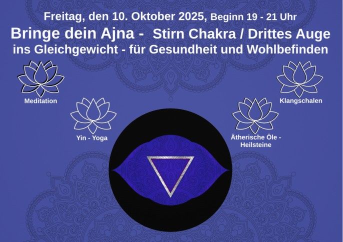 Das Ajna Chakra ist das sechste der sieben Hauptchakras. Es wird auch als Drittes Auge, als Auge der Intuition, bezeichnet.